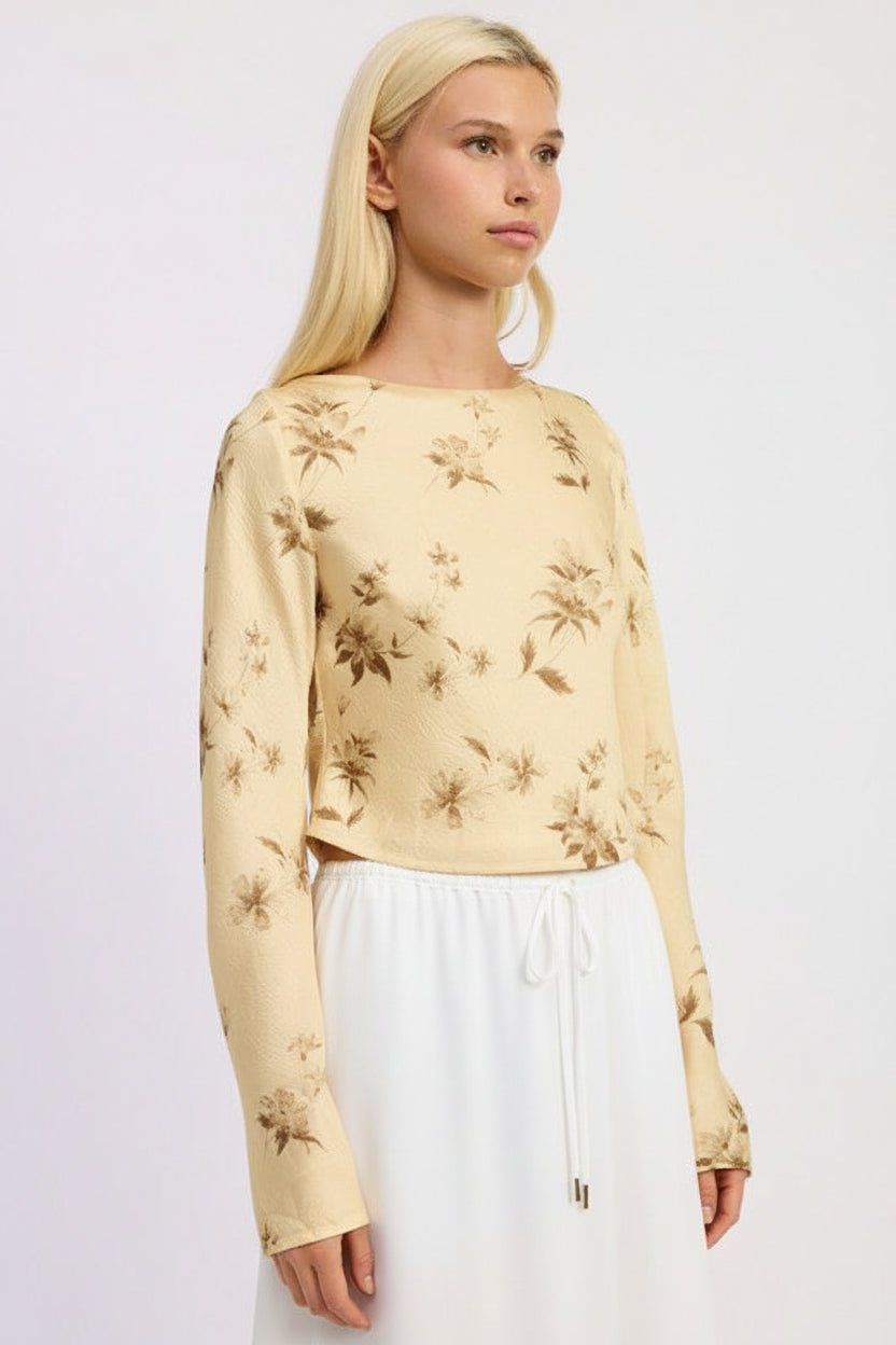 Cowl Neck Long Sleeve Blouse - Trendy Tops/Blouses & Shirts in BUTTER YELLOW PRINT for Women | The802Gypsy