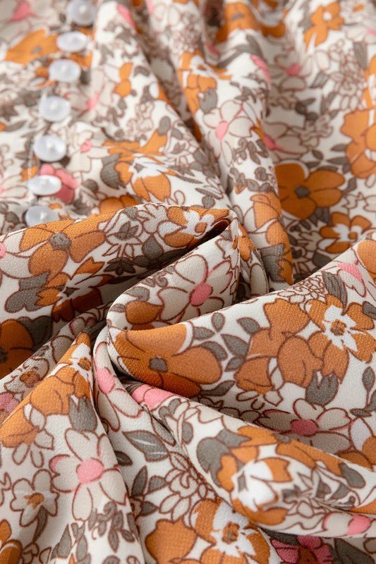 JUNIPER BLVD Floral Boho Long Puff Sleeve Buttoned Shirt - Trendy Tops/Blouses & Shirts in Orange for Women | The802Gypsy