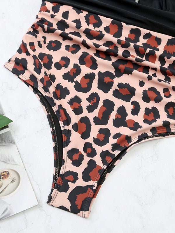 Color - Block Halter One - Piece Swimsuit - Tummy Control Design - Trendy Swimwear in Khaki for Women | The802Gypsy