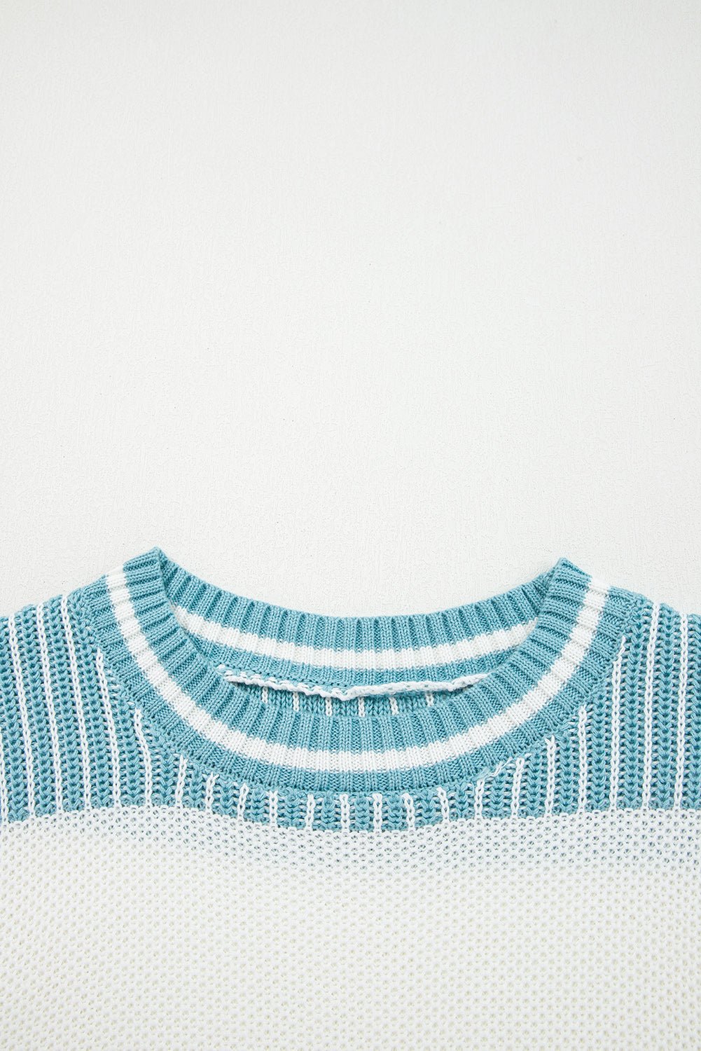Two Tone Striped Patchwork Loose Sweater - Trendy Tops in Light Blue for Women | The802Gypsy