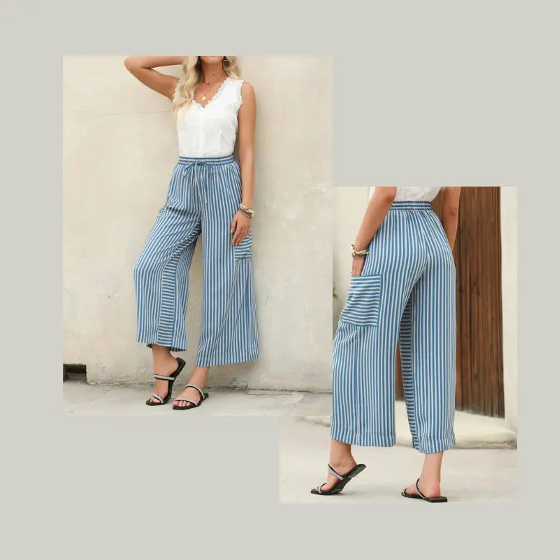 Pantalones elegantes de cintura alta y pierna ancha con bolsillos