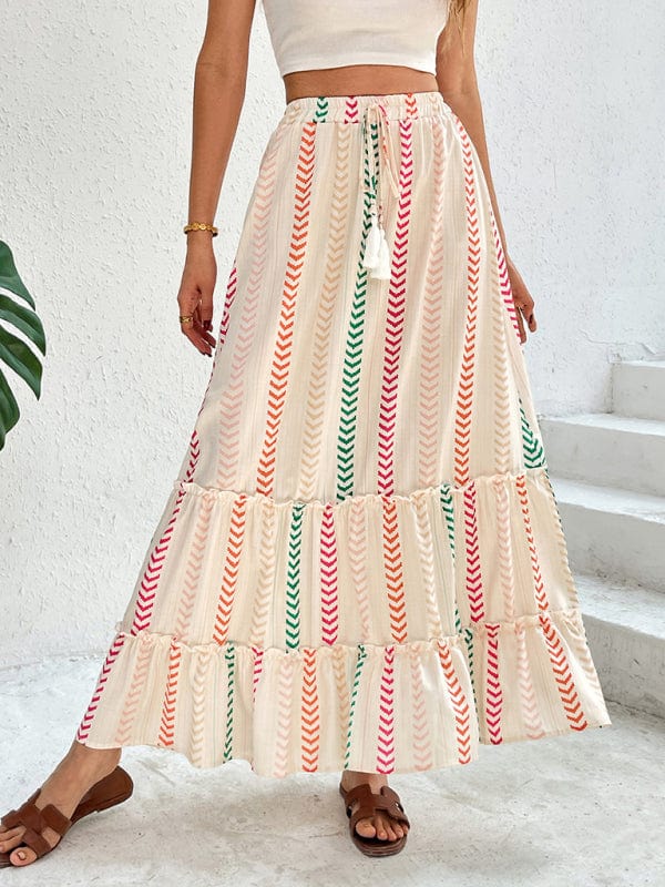 Elastic Bohemian Patchwork Skirt - Trendy Bottoms/Skirts in Cracker khaki for Women | The802Gypsy